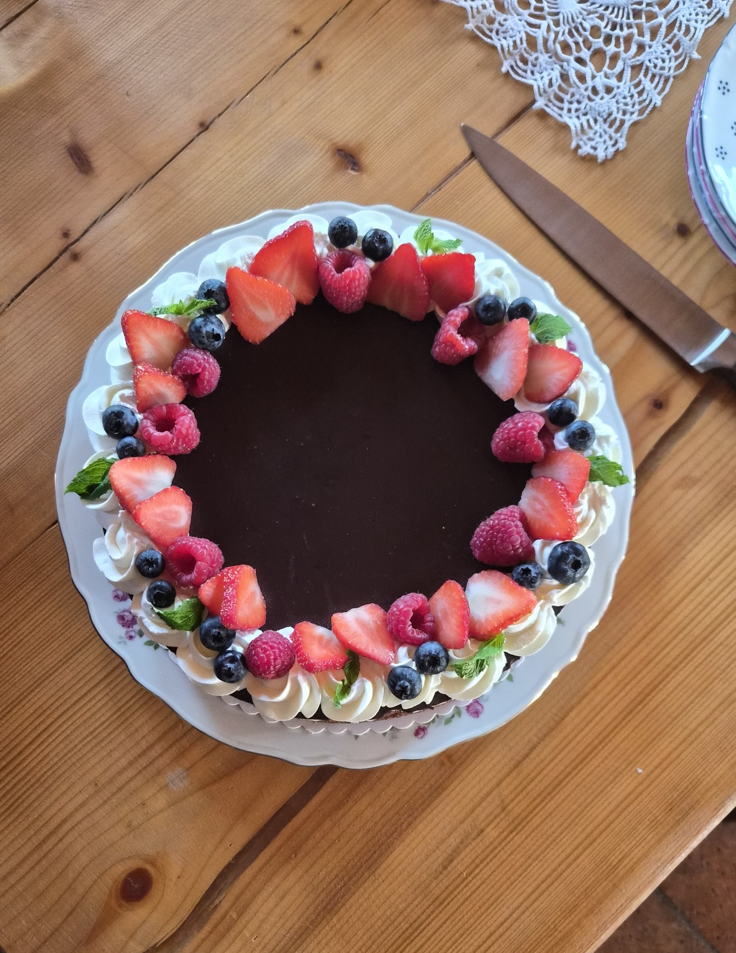 Čokoládový korpus, čokoládový krém, čokoládová poleva = čokoládový dort. Zdobení na přání.