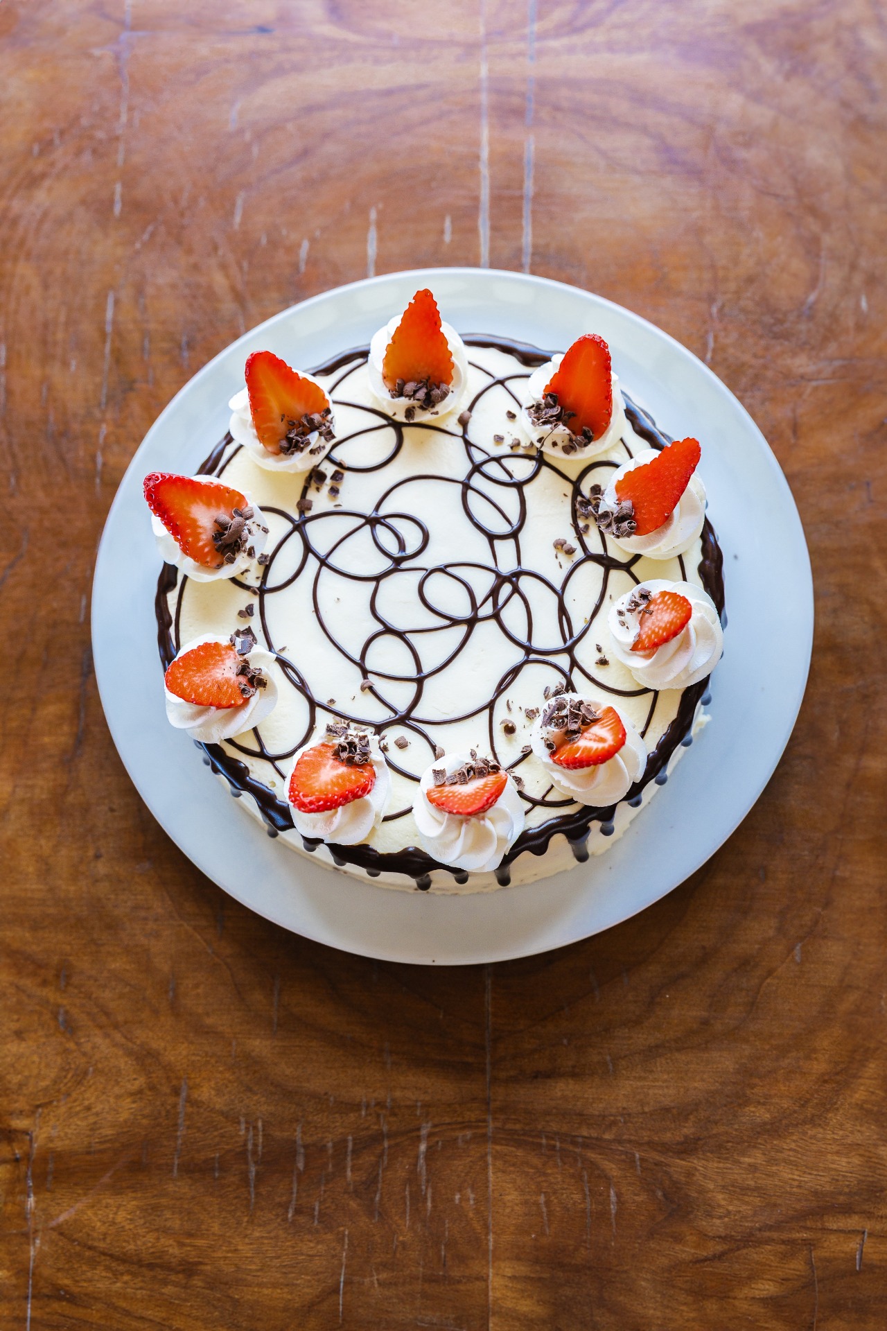 Klasický tvarohový dort. Kakaový korpus s jemným tvarohovo-máslovým krémem a nadýchanou šlehačkou. Lehký, krémový a poctivý domácí dezert, zdobený čokoládou i ovocem.