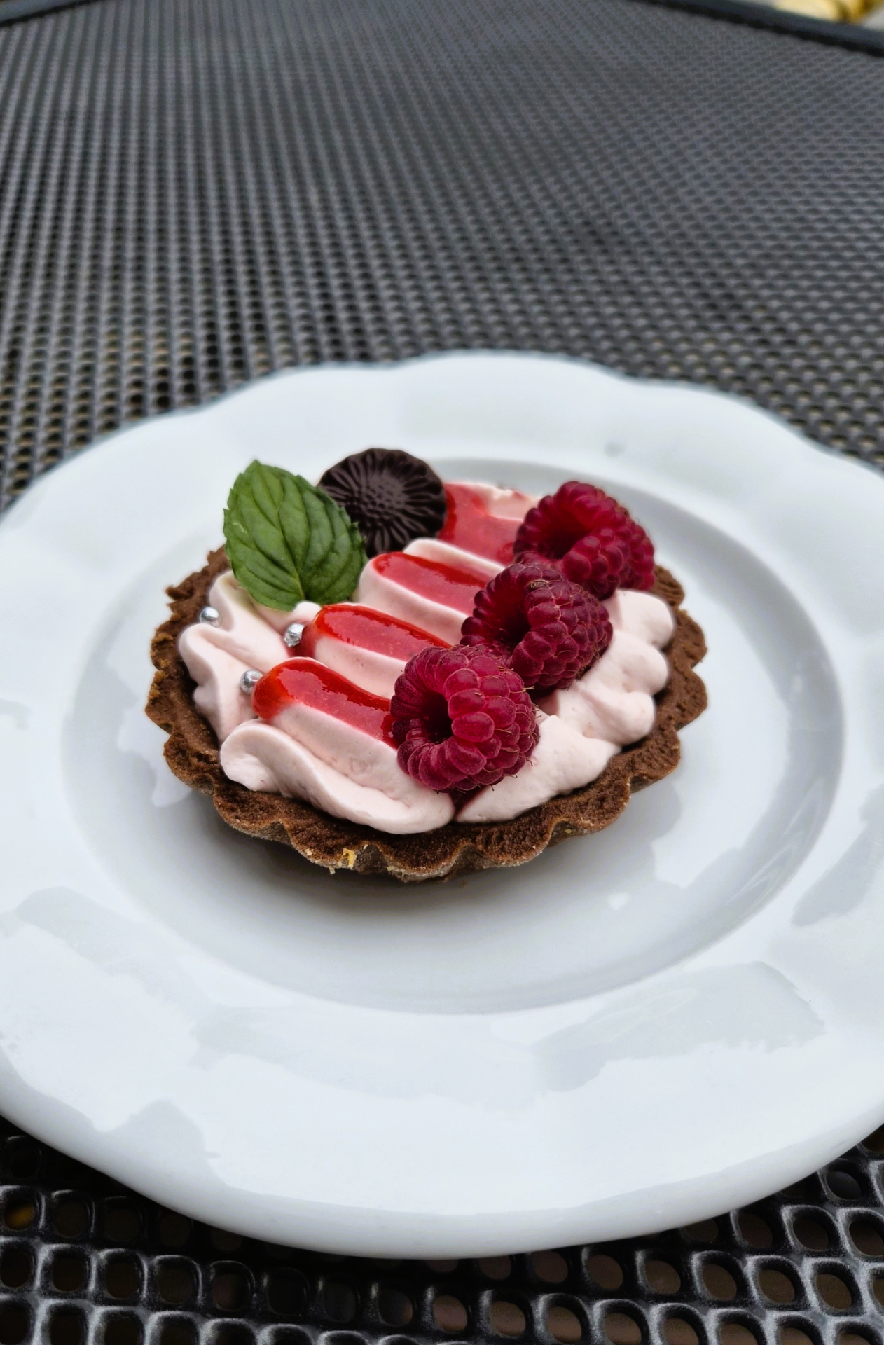 Domácí linecký košíček, ovocný rozvar, ovocný krém, zdobený sezónním ovocem.
